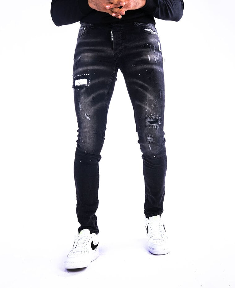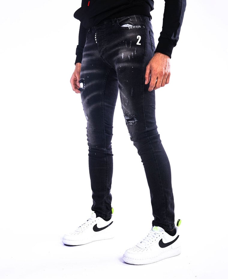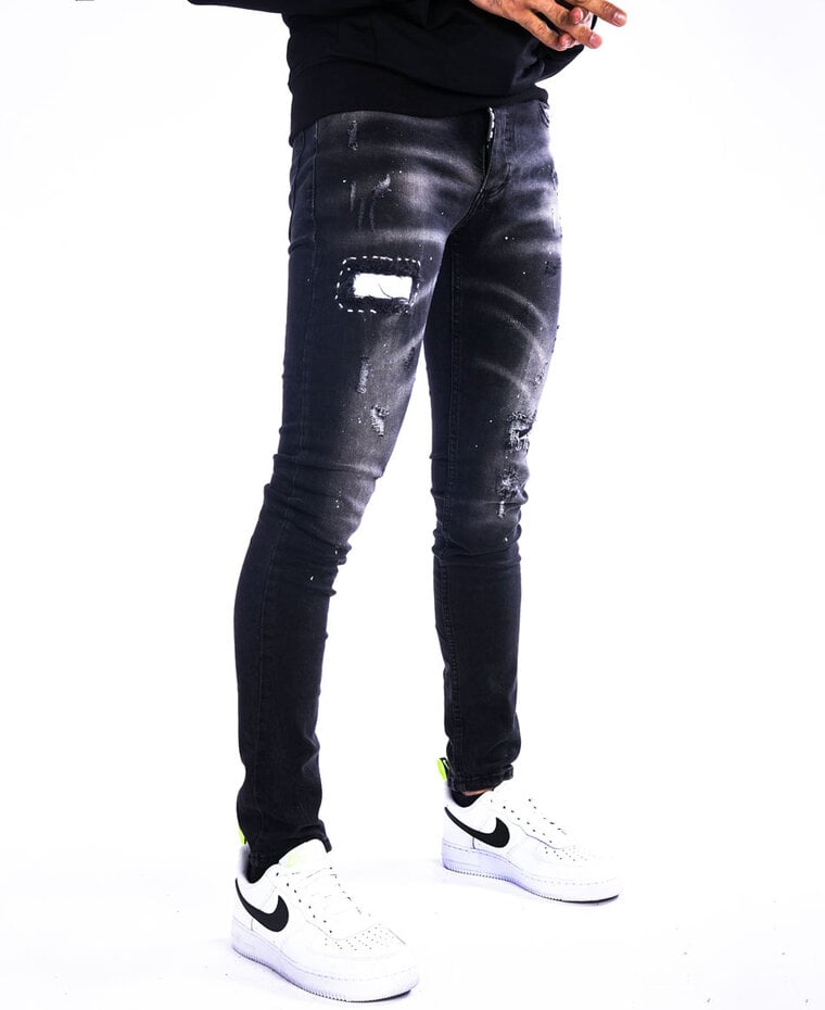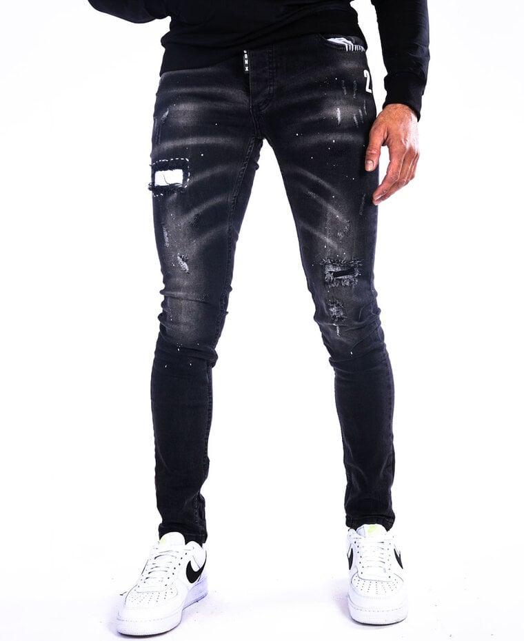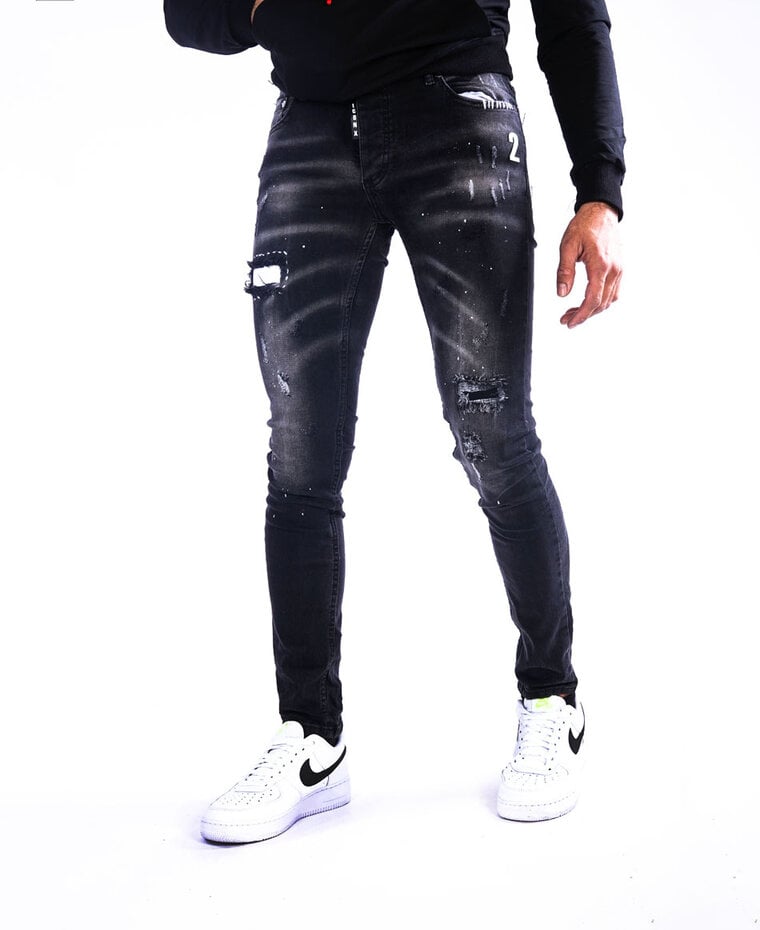 Deze stijlvolle zwarte stretch jeans voor heren geeft jouw outfit direct een stoere en trendy uitstraling. De jeans is afgewerkt met opvallende scheuren, witte slijtplekken en subtiele distressed details. Gemaakt van zachte stretch denim voor optimaal draagcomfort en bewegingsvrijheid. Perfect te combineren met sneakers, een hoodie of een casual t-shirt. Ideaal voor dagelijks gebruik en casual stijlen. Bestel jouw nieuwe stijlvolle zwarte jeans nu eenvoudig online bij ModaTotaY.