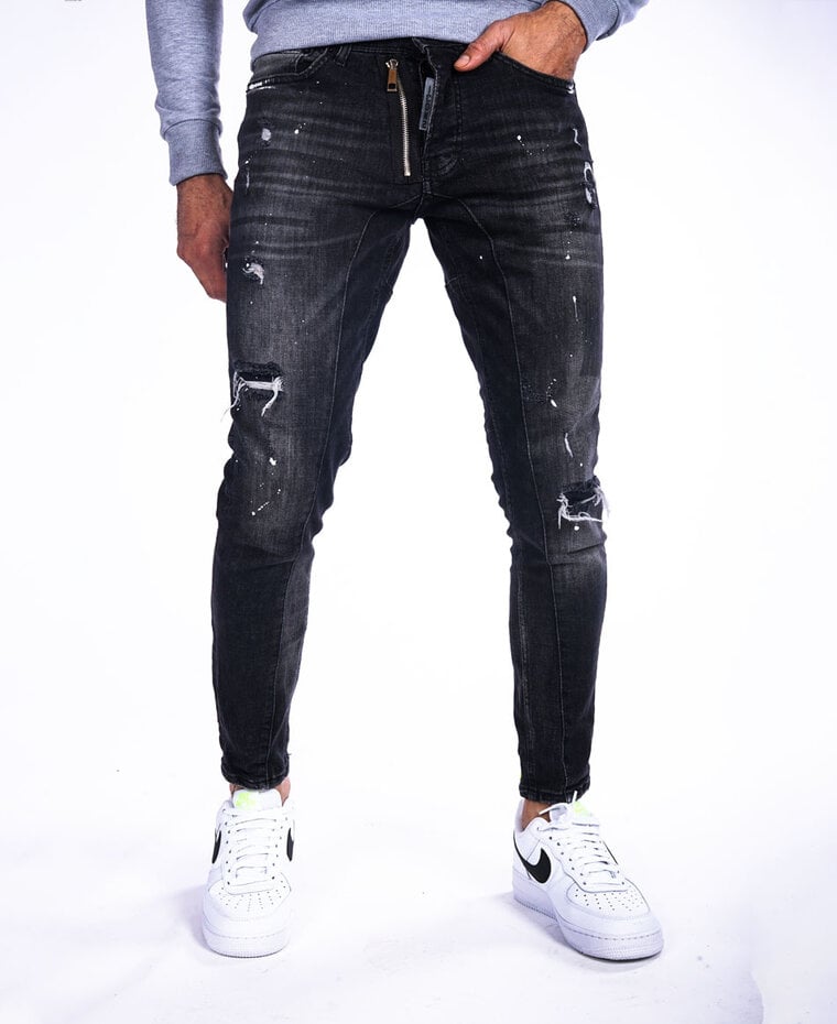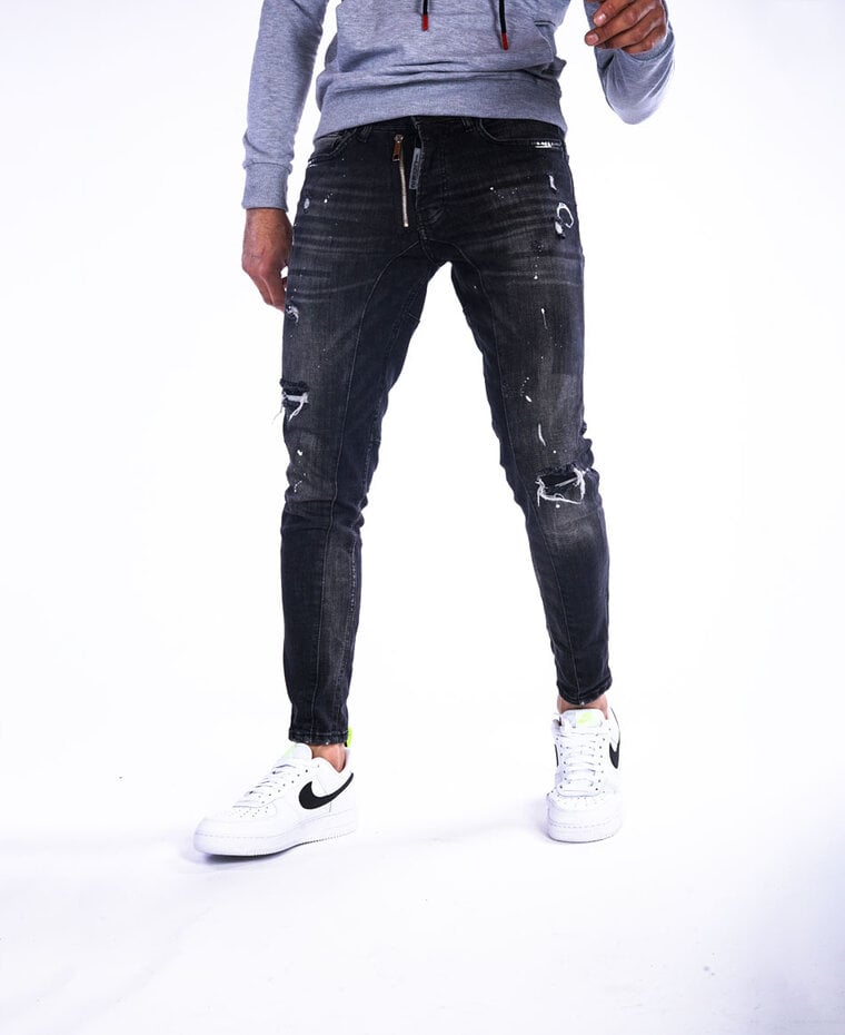 Deze zwarte jeans voor heren is de ideale keuze voor een stoere en moderne look. Het model is uitgevoerd met opvallende distressed details en scheuren, waardoor je eenvoudig een urban of casual outfit samenstelt. Gemaakt van comfortabele stretch denim voor optimale bewegingsvrijheid en een perfecte pasvorm. Combineer deze zwarte spijkerbroek met sneakers, een hoodie of een basic t-shirt voor een complete streetwear look. Shop jouw nieuwe zwarte jeans met scheuren nu bij ModaTotaY.