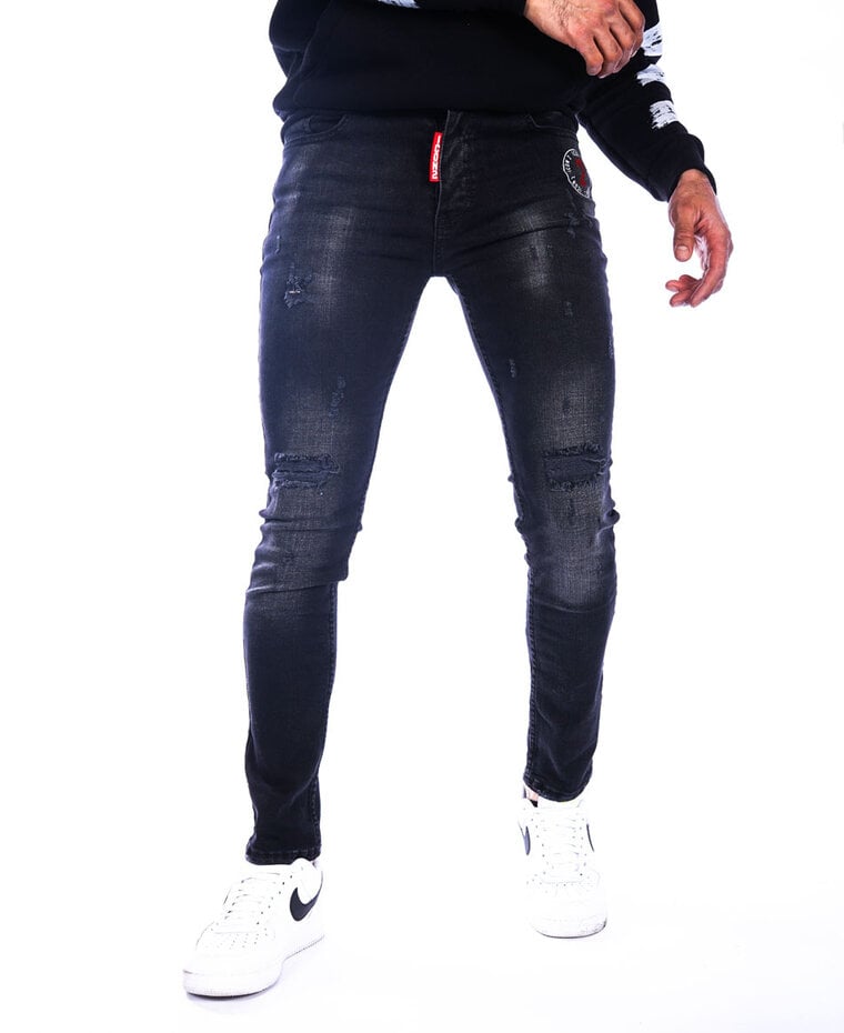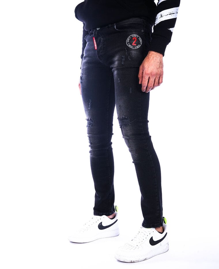 Voeg direct karakter toe aan je outfit met deze zwarte heren jeans met subtiele wassing en opvallende patchdetails. Gemaakt van comfortabele stretch denim, biedt deze broek een perfecte pasvorm en optimaal draagcomfort. De licht versleten look en unieke afwerking maken dit model ideaal voor modieuze casual looks. Draag ‘m met sneakers en een basic sweater voor een eigentijdse uitstraling. Scoor nu jouw nieuwe favoriete jeans bij ModaTotaY.