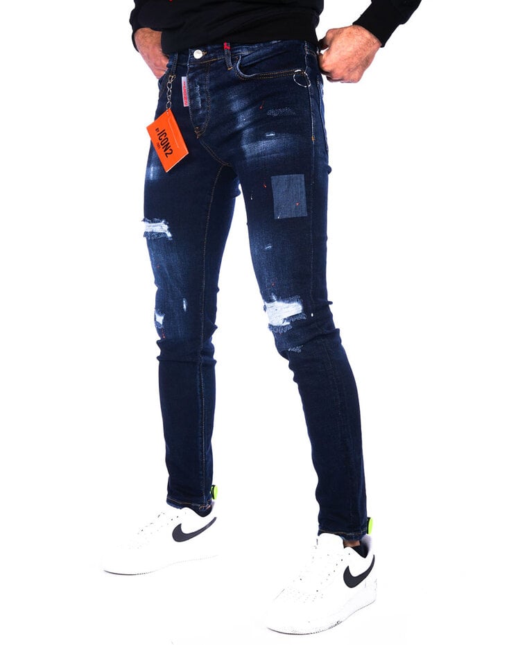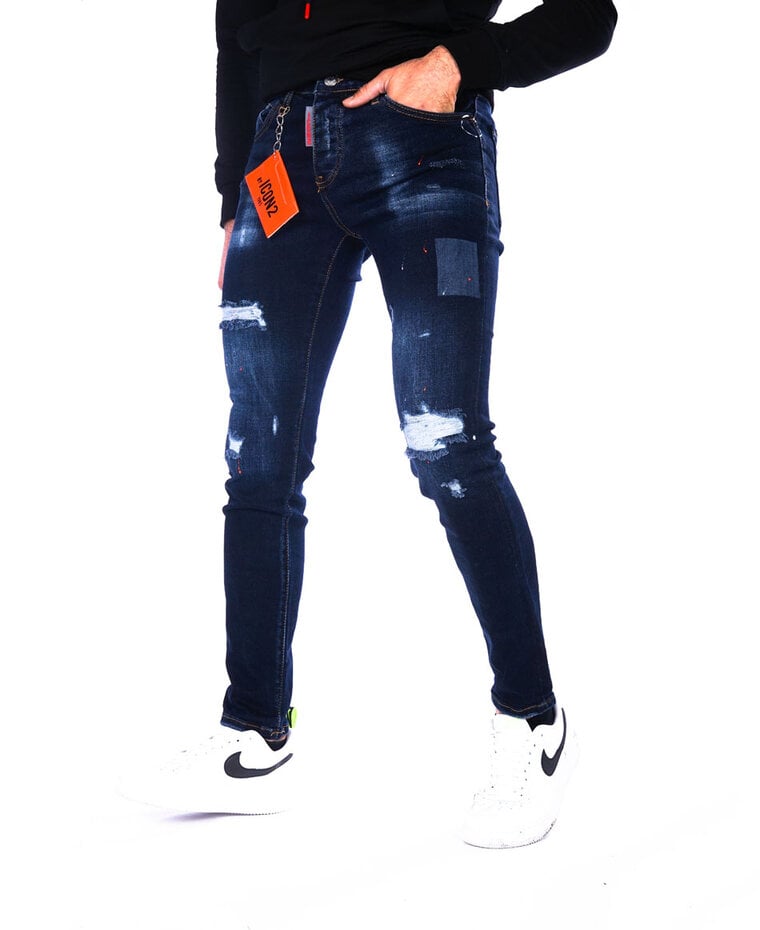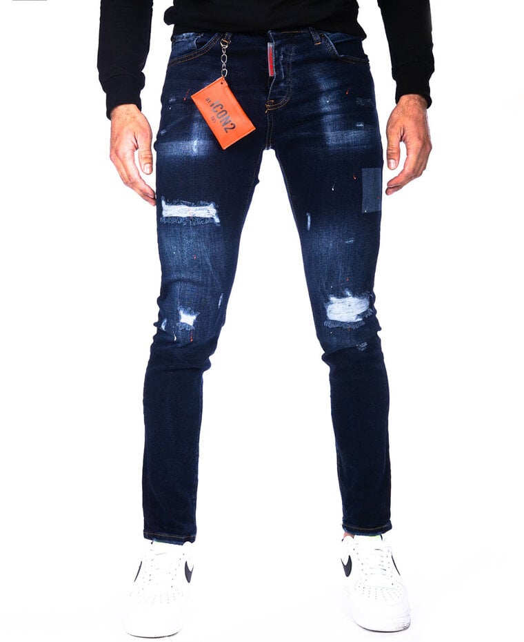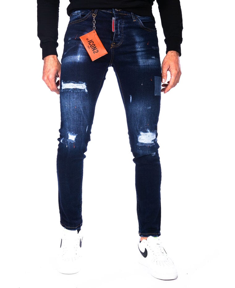 Geef je outfit karakter met deze Icon blauwe denim jeans voor heren. Gemaakt van premium stretchstof voor optimaal comfort en bewegingsvrijheid. De uitgesproken destroyed look met scheuren en subtiele verfdetails maakt elke broek uniek. Perfect te combineren met basic T-shirts, hoodies of een nette blazer voor een casual-smart uitstraling. Deze spijkerbroek is jouw go-to keuze voor elke dag.