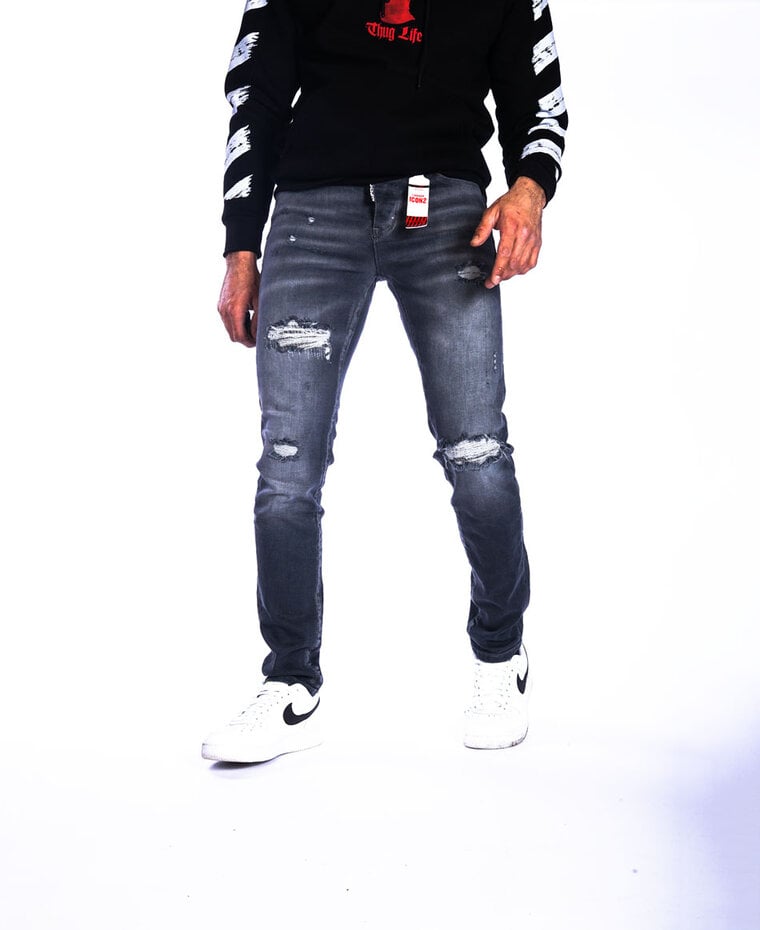 Upgrade je look met deze grijze heren spijkerbroek met stoere scheuren. Gemaakt van elastische stretch denim voor maximaal comfort en bewegingsvrijheid. De moderne gewassen look en subtiele beschadigingen geven deze jeans karakter en stijl. Combineer moeiteloos met je favoriete T-shirt, sweater of overhemd. Een must-have voor iedere man die houdt van casual, trendy en comfortabele kleding. Perfect voor dagelijks gebruik of een avondje uit.
