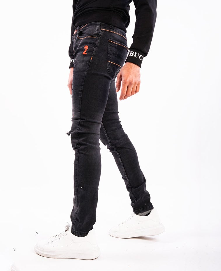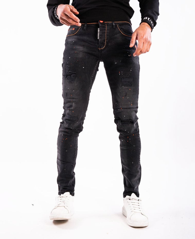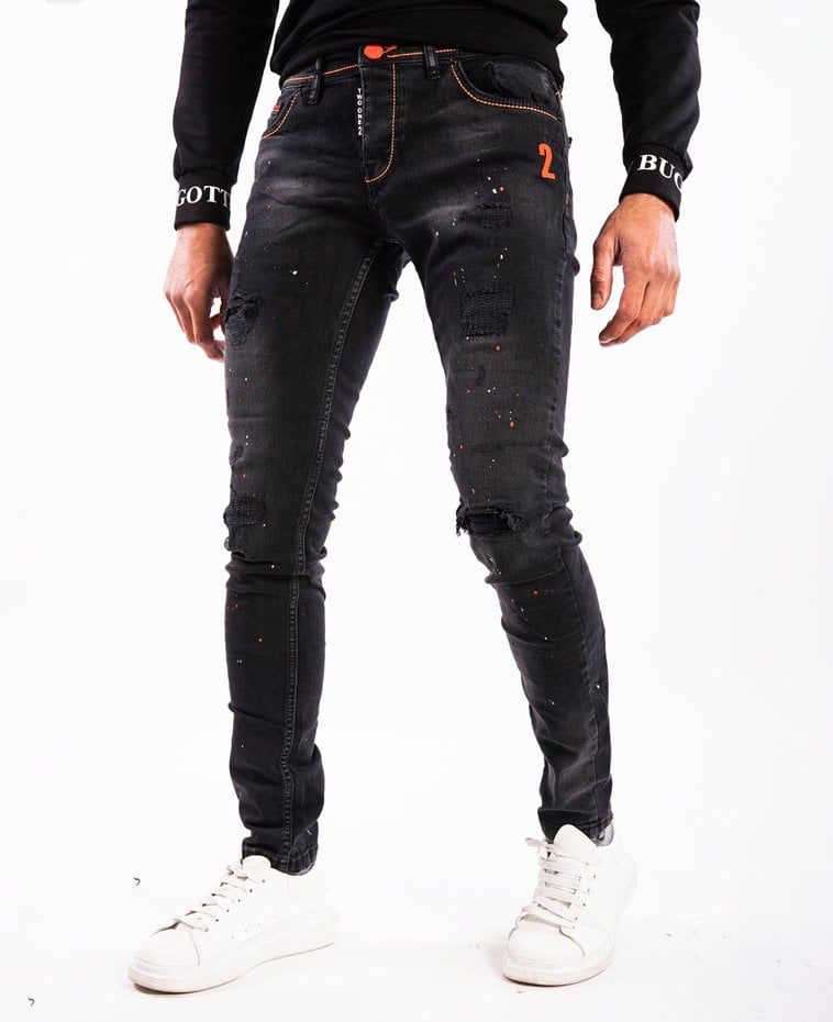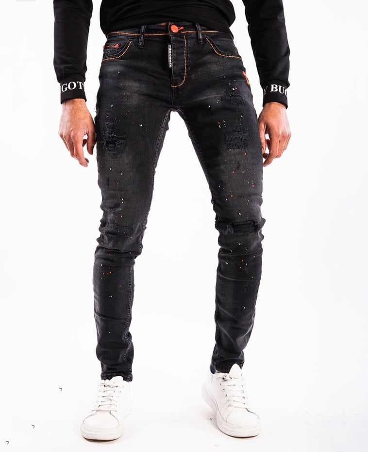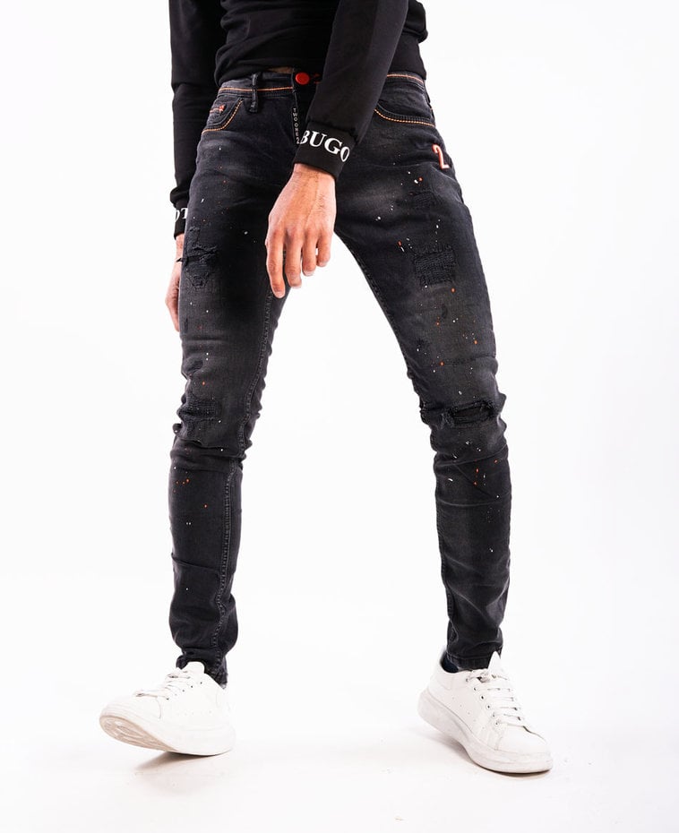 De Icon Jeans in zwart met subtiele oranje en witte verfspetters is dé eyecatcher voor je casual en streetwear outfits. Deze zwarte jeans voor heren heeft een moderne fit en is gemaakt van hoogwaardige denim met comfortabele stretch. De unieke verfspetters geven de jeans een stoere, urban uitstraling. Combineer de Icon Jeans zwart eenvoudig met een basic t-shirt, hoodie of casual overhemd. Perfect voor wie een statement wil maken. Bestel jouw Icon Jeans zwart met verfspetters nu bij ModaTotaY.