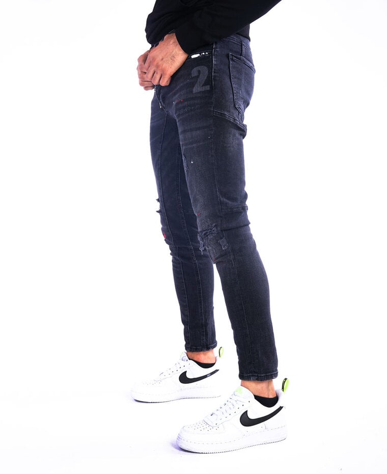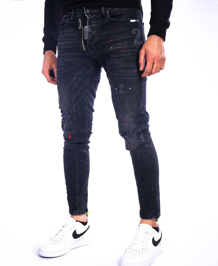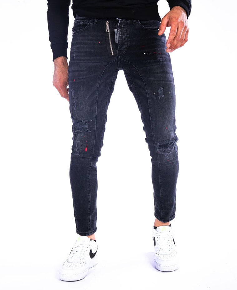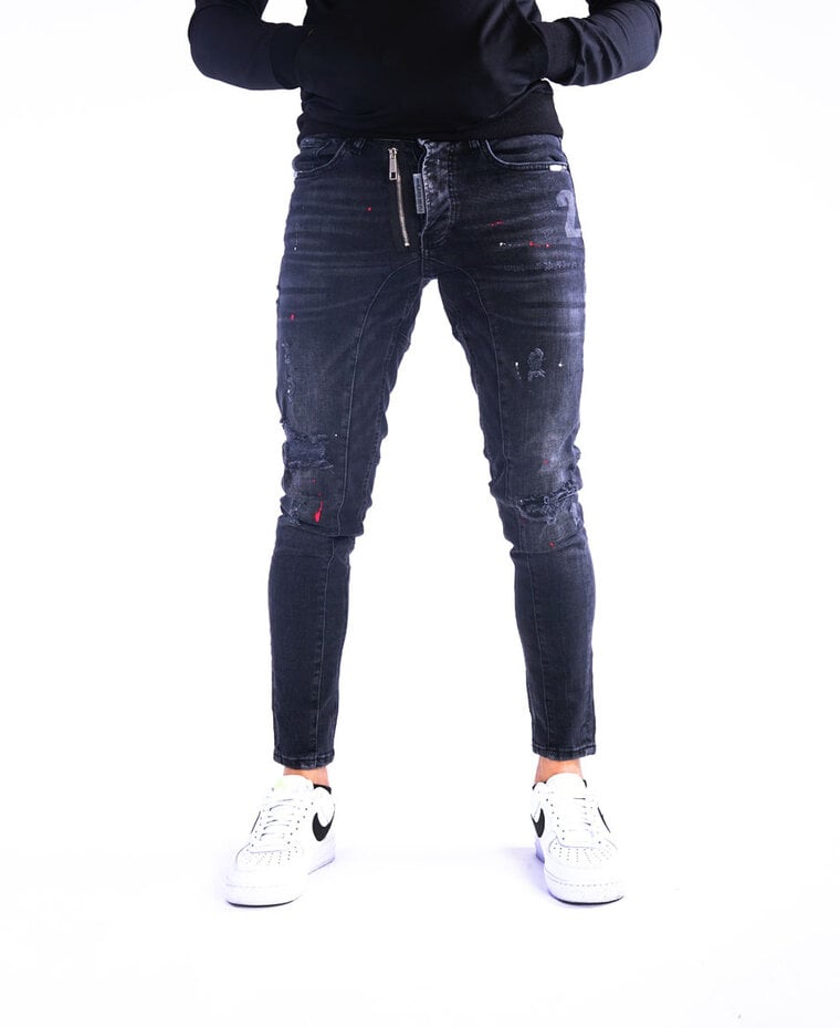 Zwarte Jeans met Rode Verfspetters