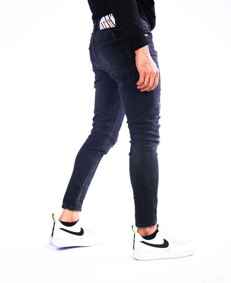 Deze zwarte jeans voor heren is dé perfecte keuze voor een stoere en opvallende streetwear look. De jeans is uitgevoerd met subtiele rode verfspetters en distressed details, wat zorgt voor een unieke, urban uitstraling. Gemaakt van comfortabele stretch denim voor optimale bewegingsvrijheid en draagcomfort. Combineer deze zwarte spijkerbroek moeiteloos met sneakers, een hoodie of een basic t-shirt. Geschikt voor casual outfits, streetwear en moderne urban stijlen. Shop jouw nieuwe zwarte jeans met rode verfspetters nu eenvoudig online bij ModaTotaY.