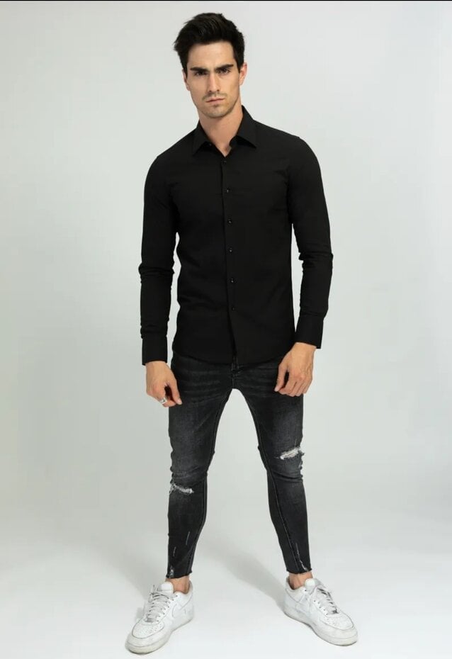 Dit zwarte overhemd voor heren is dé perfecte keuze voor zowel zakelijke als casual outfits. Gemaakt van hoogwaardige stof voor optimaal comfort en bewegingsvrijheid. Het geatelierde ontwerp en de moderne fit zorgen voor een stijlvolle uitstraling, zowel op kantoor als in je vrije tijd. Combineer dit overhemd moeiteloos met een blazer, chino of jeans voor een veelzijdige look. Bestel jouw zwarte overhemd heren nu eenvoudig online bij ModaTotaY.