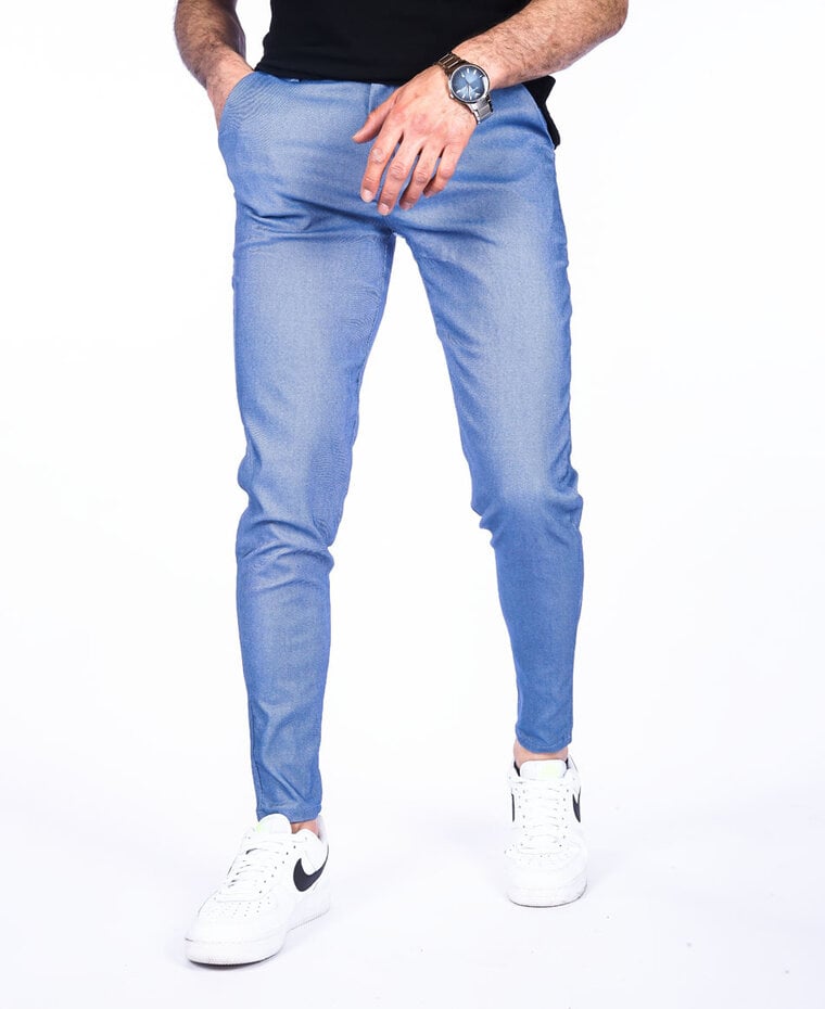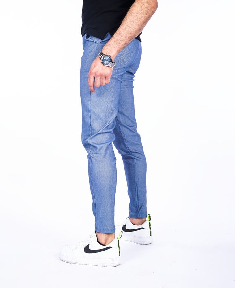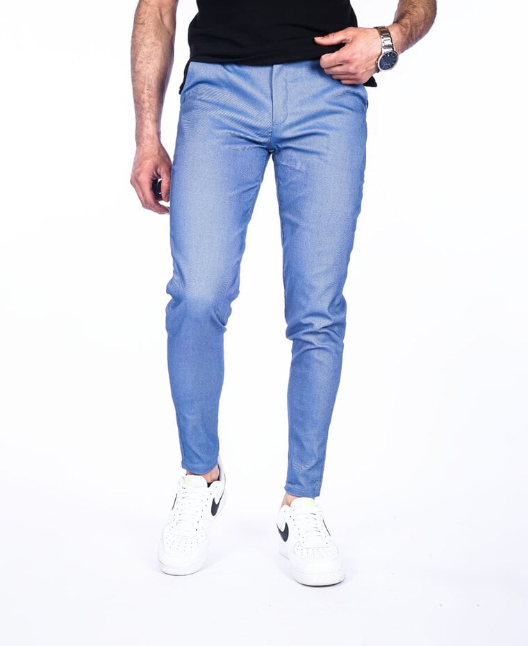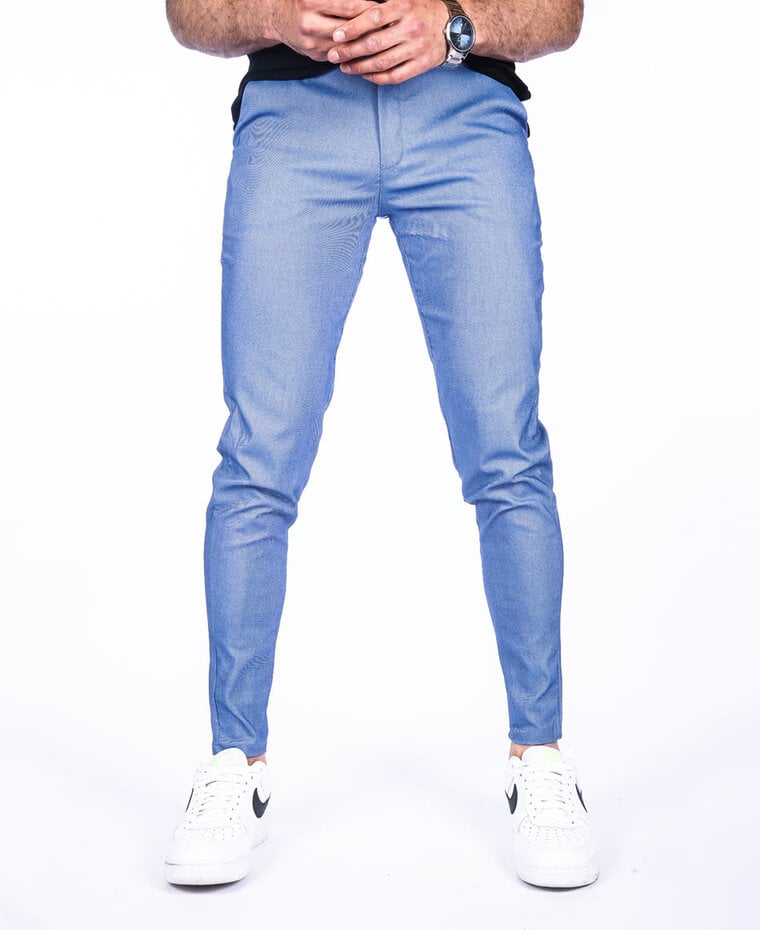 Slim fit blauwe stretch heren pantalon