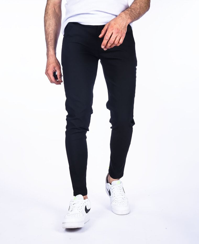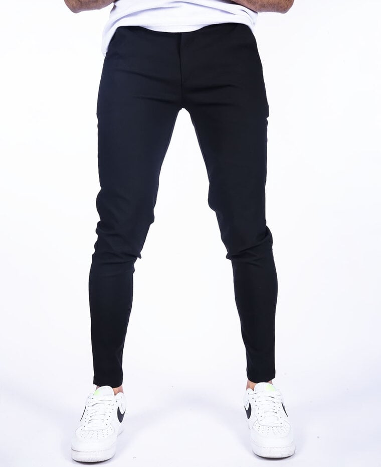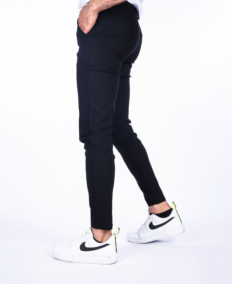Ontdek deze stijlvolle slim fit zwarte pantalon voor heren, perfect voor zowel casual als nette gelegenheden. De pantalon is gemaakt van een comfortabele stretchstof die zorgt voor optimale bewegingsvrijheid en een perfecte pasvorm. Combineer hem moeiteloos met een overhemd of T-shirt. Een must-have voor elke moderne man.